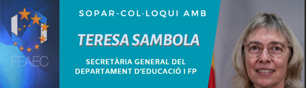 Enguany farem coincidir l’assemblea amb un SOPAR-COL·LOQUI al voltant de les prioritats i reptes del Departament d’Educació i Formació Professional. La convidada és la Sra. Teresa Sambola, Secretària General del Departament d’Educació i Formació Professional.