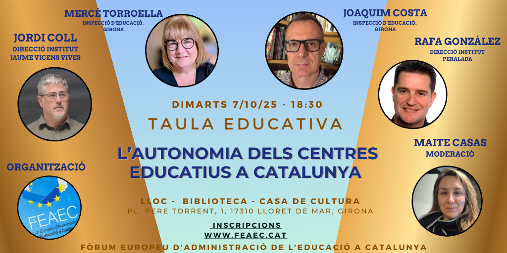 L’inspector d’educació i soci del FEAEC Joaquim Costa ens presenta un estudi sobre aquest tema acompanyat de diverses persones vinculades a l’administració de l’educació.
